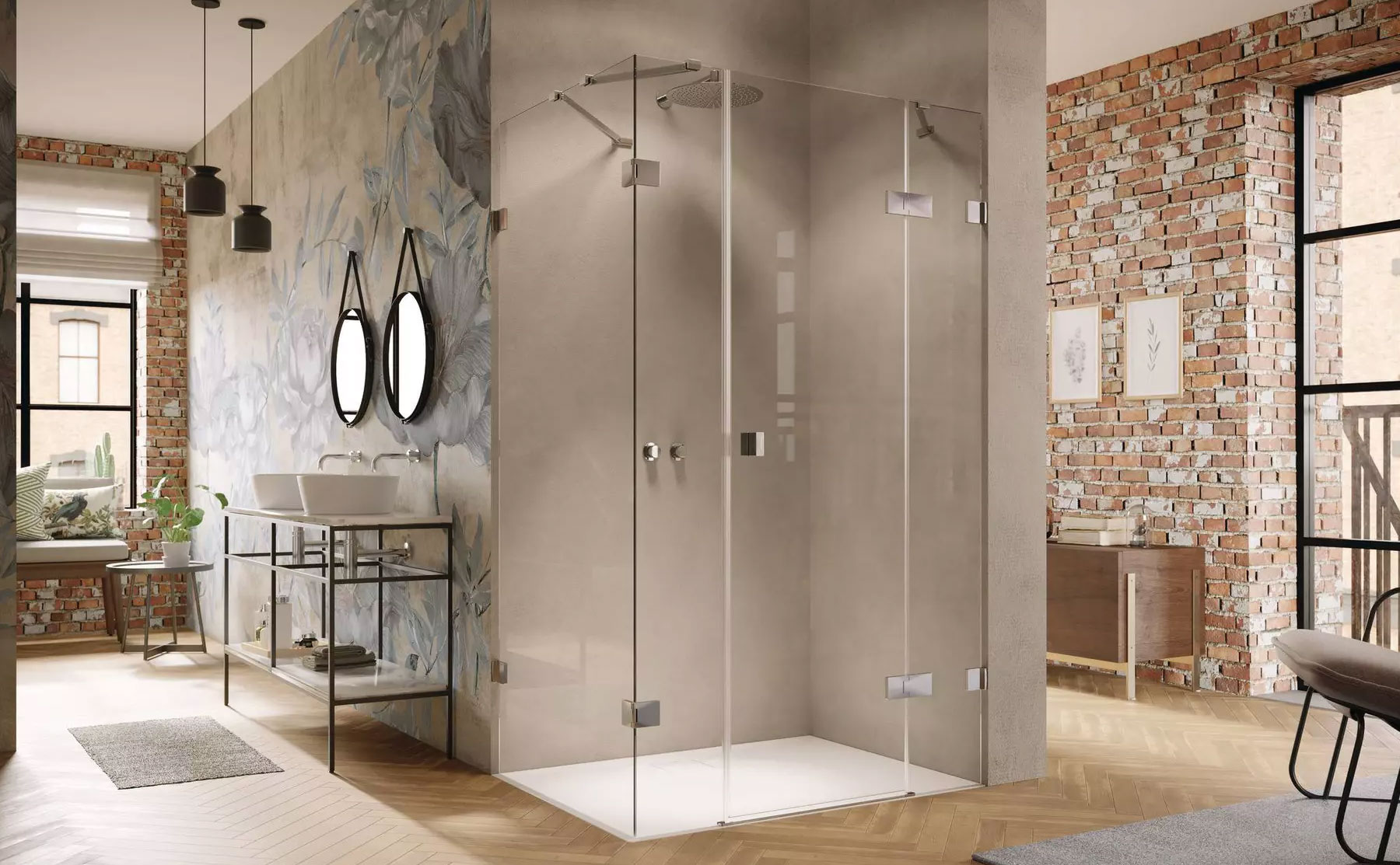 Platzsparend: Die Solva kommt auch in kleineren Bädern zur Geltung. Mit Schwingfalttüren, die sich komplett an die Wand falten lassen, bleibt es in der Dusche angenehm geräumig.